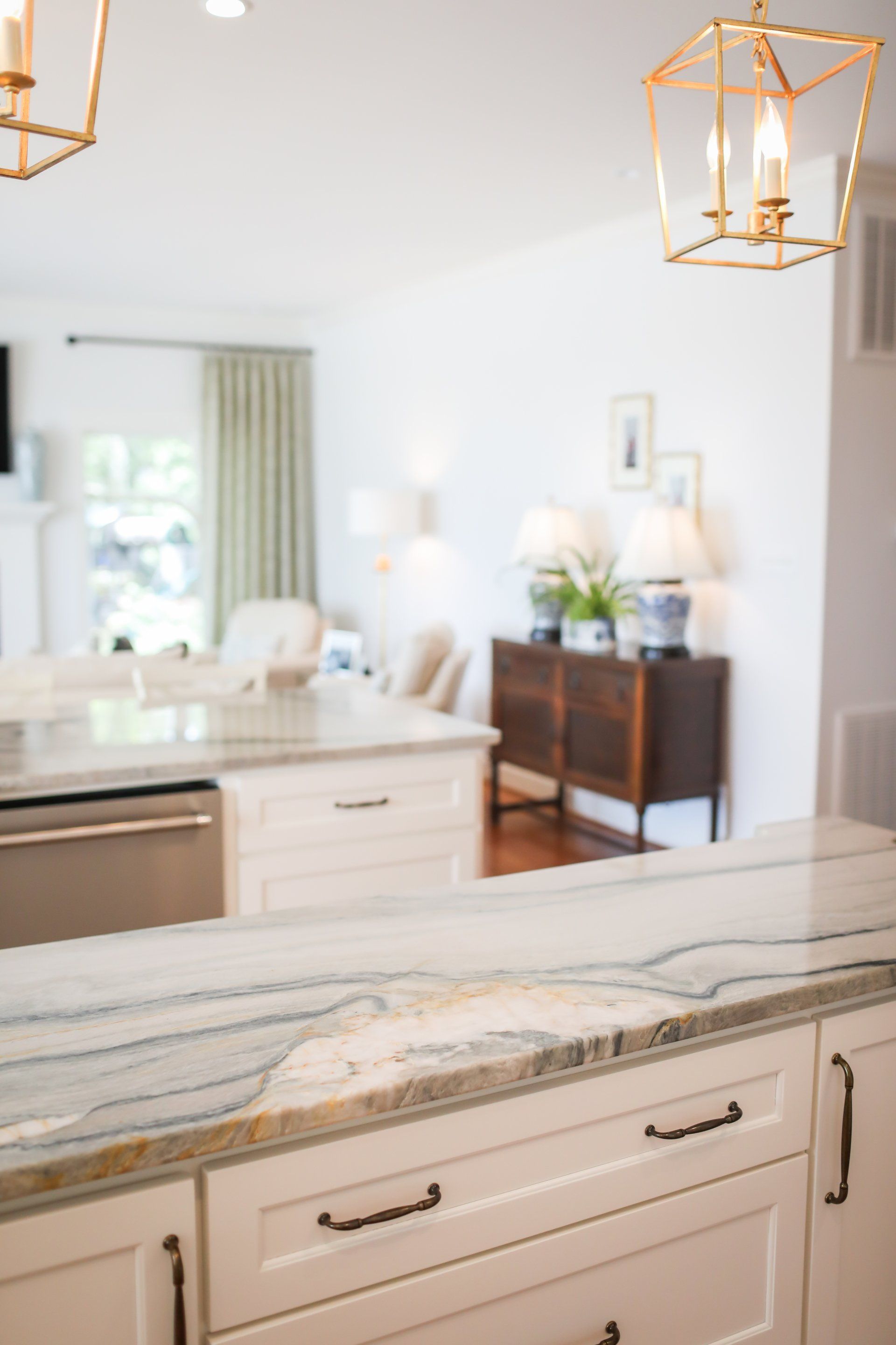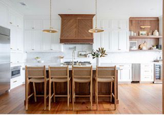 Elegant Kitchen Countertops — Marble Kitchen Table and Wooden Chimney in Savannah, GA